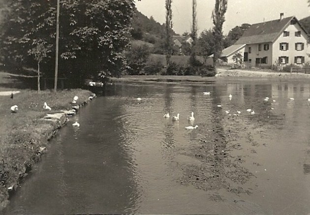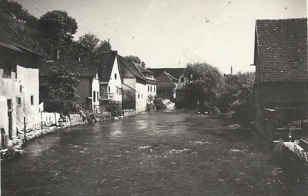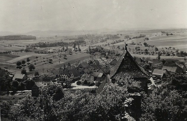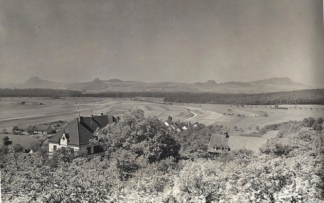 Aach mit Hegau-Berge v.l.n.r Hohentwiel ,Krähen,Mägdeberg,Hohenstoffeln