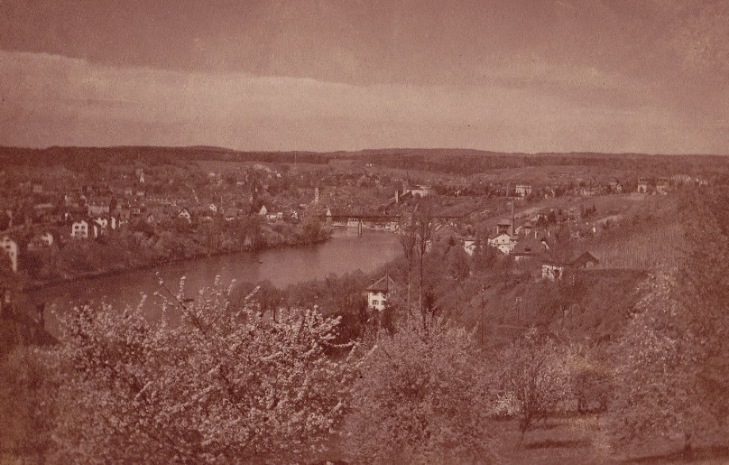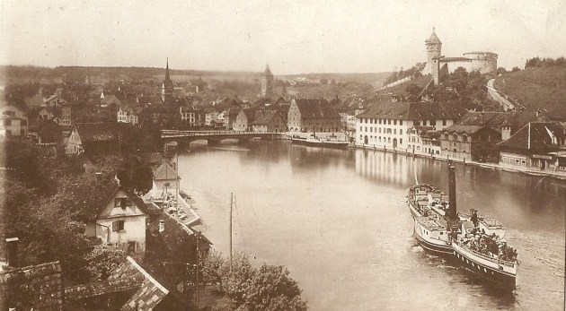 Bau der Eisenbahnbrücke Schaffhausen-Feuerthalen 1895 -Foto von Tronel