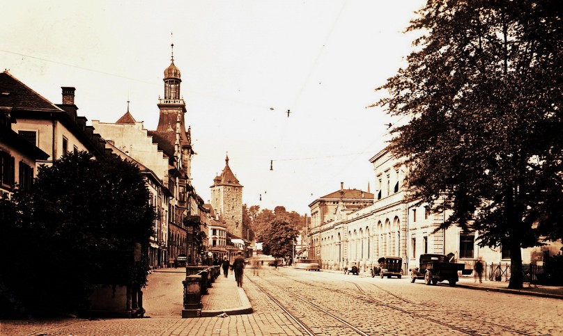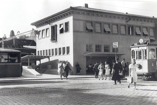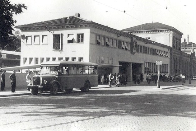 neuer Bahnhofflügel Schaffhausen nach der Bombardierung um 1946