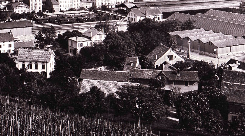 Entwicklungsbad mit Sicht zum Bahnhof Schaffhausen