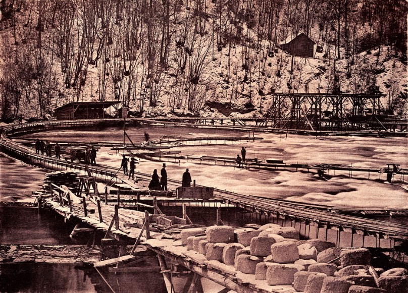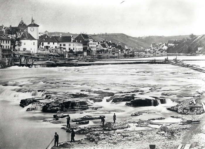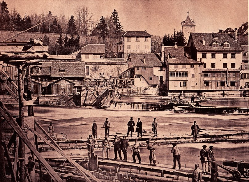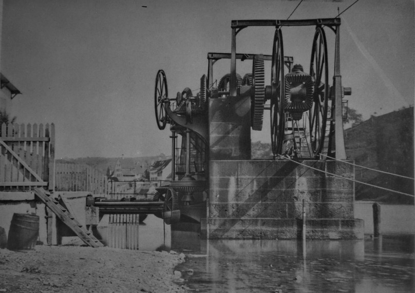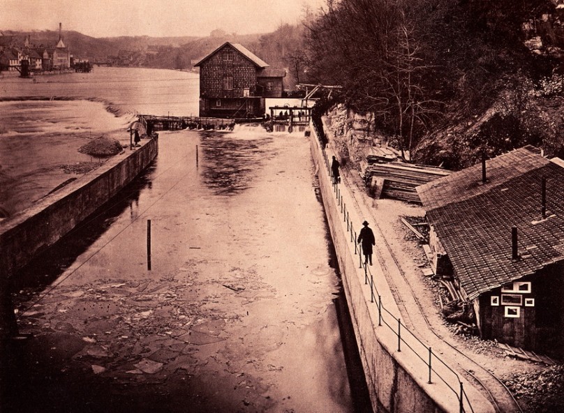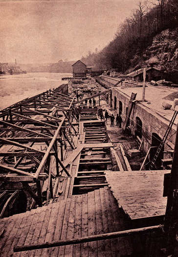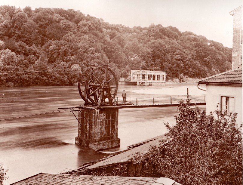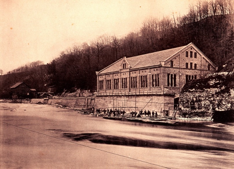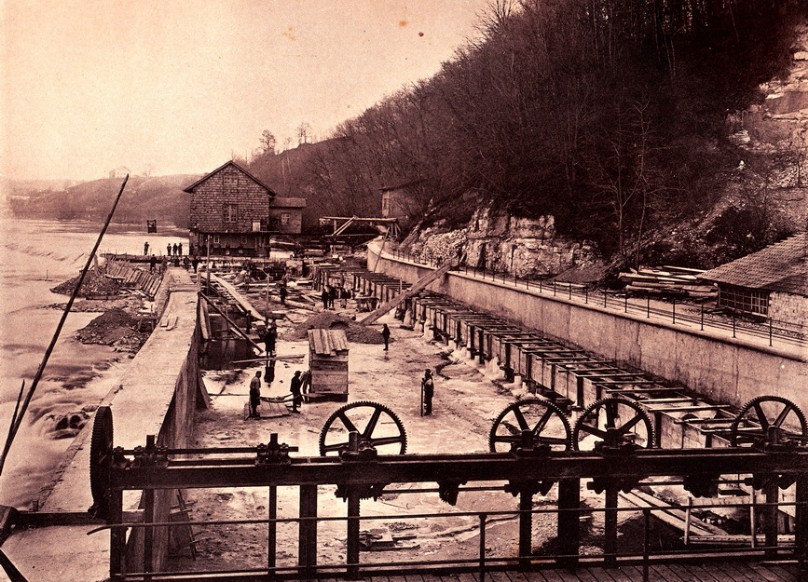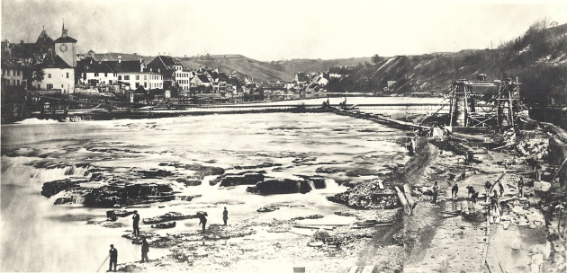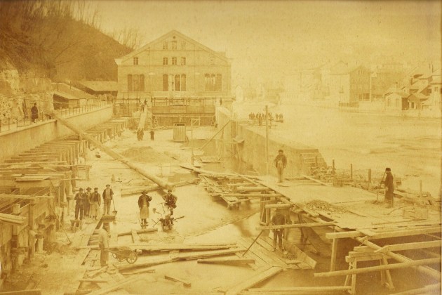 Foto unten: Turbinenhaus und Querdammbau 1864/65
